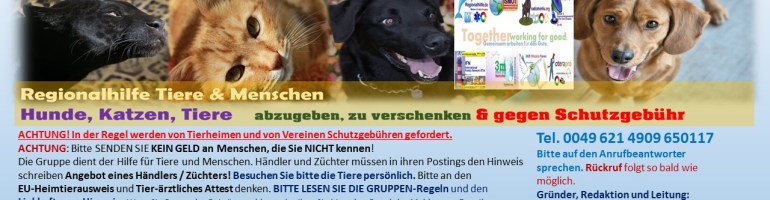 Ludwigshafen am Rhein. 22. Juli 2019. Nach der Löschung unser Gruppe am Sonntag 21, Juli 2019 für die Hilfe für Tiere und Menschen mit 5500 Mitgliedern von Facebook, hat Regionalhilfe Tiere eine neue Gruppe außerhalb von Facebook eingerichtet. https://about.me/regionalhilfetiere