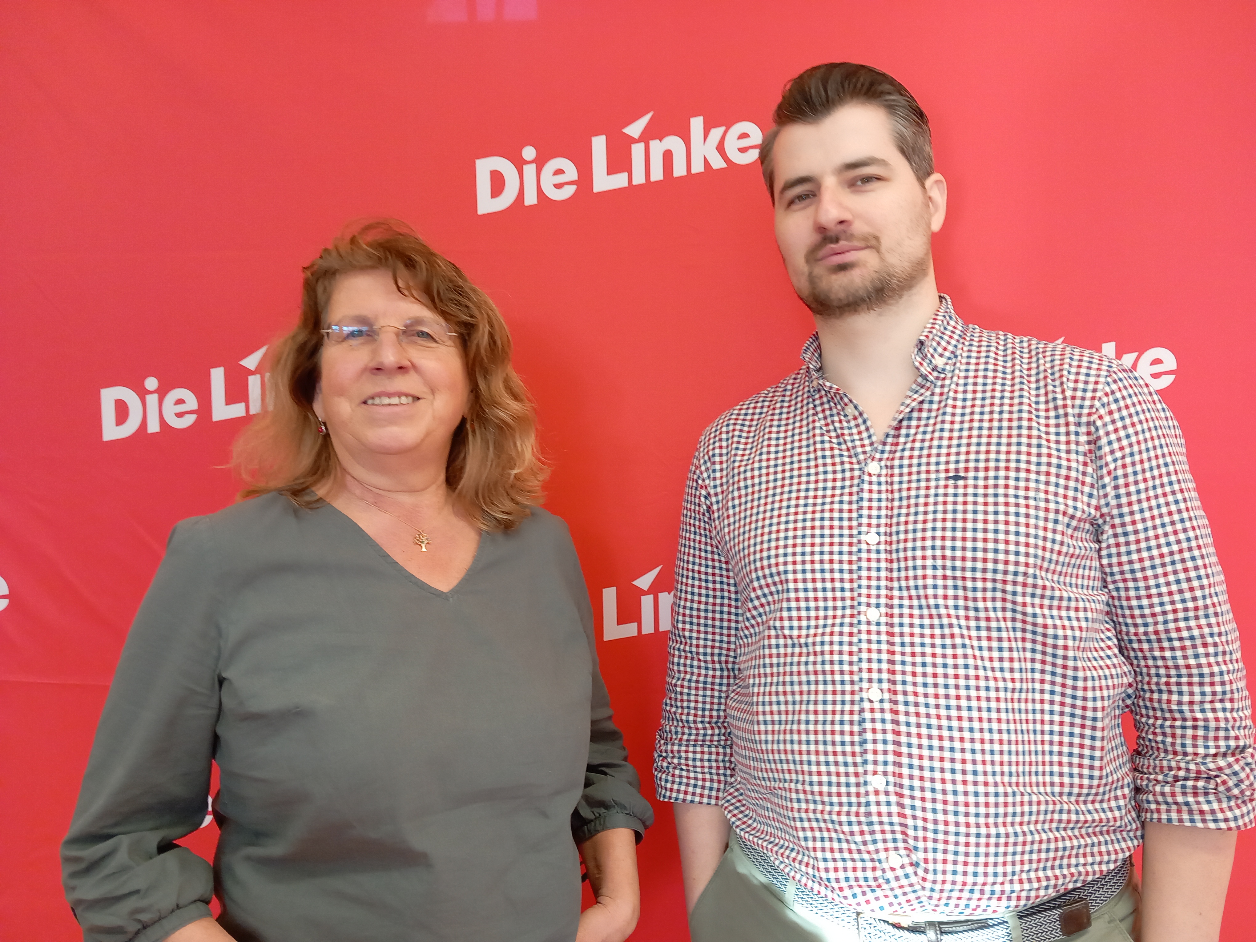 Der neue DIE LINKE Vorsitzende Jonas Leibig und die stellvertretende Vorsitzende Claudia Kocabalkan wollen mit neuen Kandidierenden zur Kommunalwahl am 9. Juni 2024 DIE LINKE zum Erfolg führen Im Bild fehlt die Schatzmeisterin Vera Rosisko. Foto: Andreas Klamm